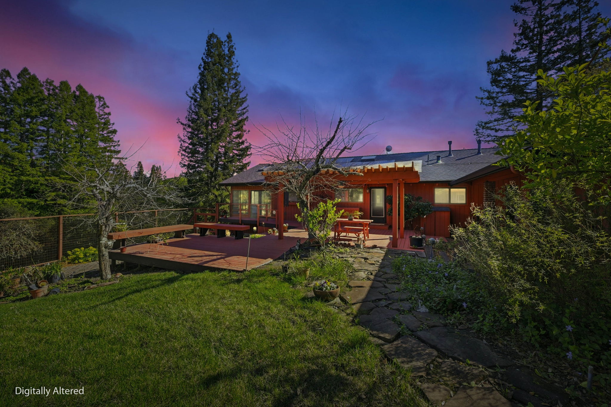 This knoll top Mid Century modern redwood home with Japanese flair sits on a rare, flat usable 2.5+ acreage providing extra sunshine and long range views of the summit. Easy one-story living in and out, massive decks , high ceiling, picture windows, glass doors. Open floor plan with recently updated kitchen/baths and new appliances. Additional 250sqf atrium gives extra dimension to indoor-outdoor living. Easy commute from the Santa Clara Valley, 20 minutes to Los Gatos village or Santa Cruz. A semi attached room has been art studio then exercise room then tool room, or perhaps your new guest quarters? Attached 2-carport can become new rooms or easily turn into garage. Large meadow, perhaps your vineyard opportunity? Exceptional easy access to parking and large RV spaces. A separate horse barn area awaits revival. Work shop. Excellent Los Gatos schools. Other recent improvements: exterior paint, solar including Tesla powerwall and EV charger, furnace/AC, replaced well pump, new floor/carpet. Simplicity meets modern comfort. Move-in ready!